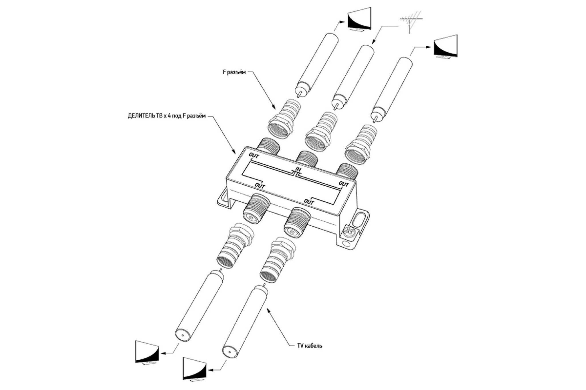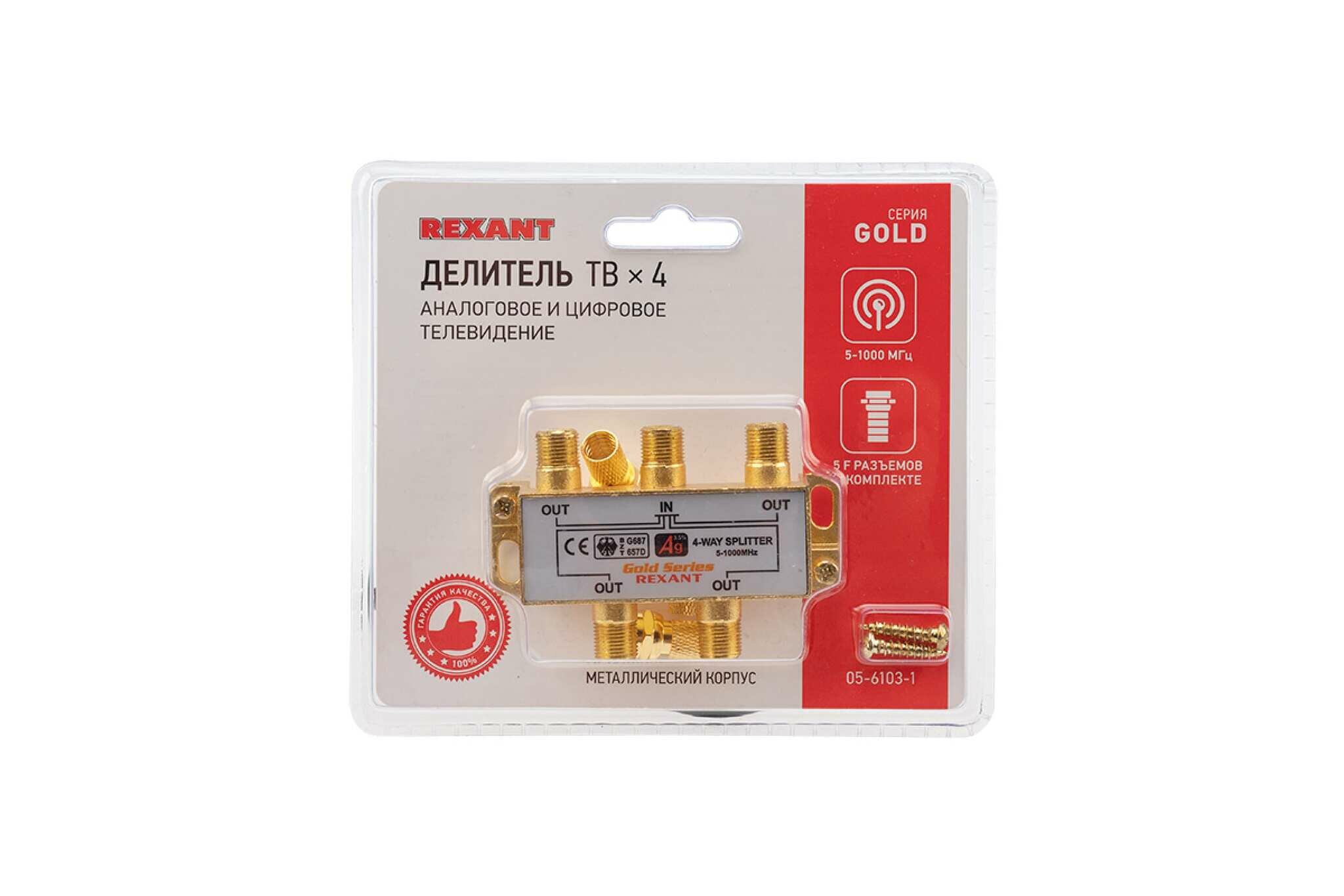 Делитель REXANT ТВ х 4 + 5шт. F BOX 5-1000 МГц GOLD 05-6103-1 интересное: