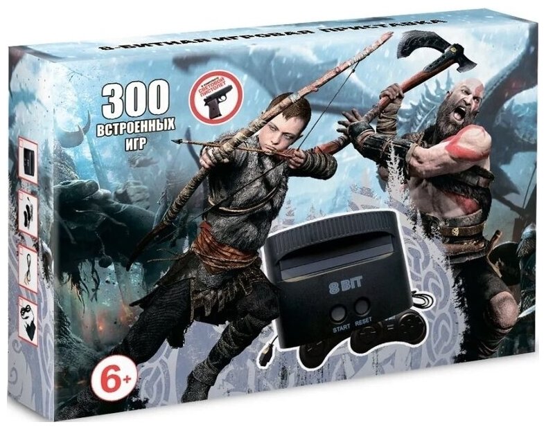 Игровая приставка NES God of War (300 Игр 8-Bit), два джойстика и световой пистолет интересное: