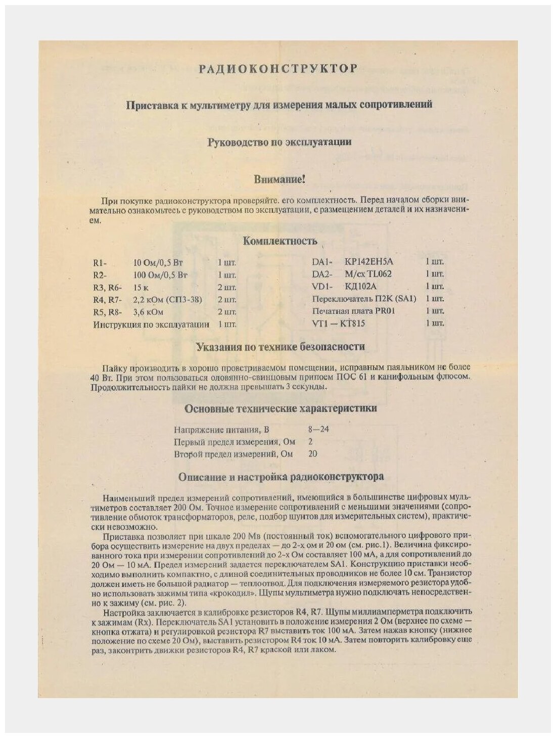 Радиоконструктор "Приставка к мультиметру для измерения малых сопротивлений" (Ф) интересное:
