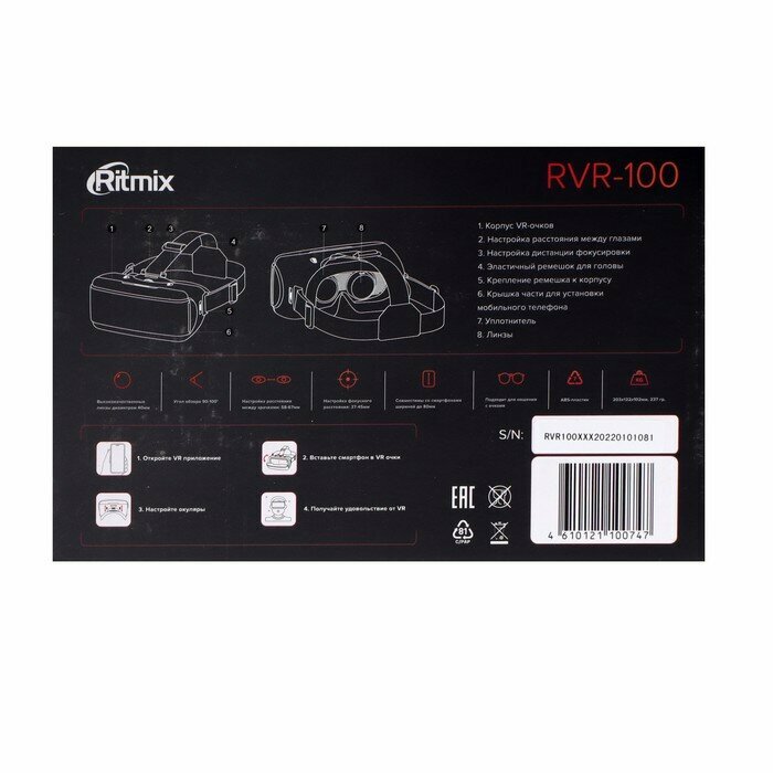 Очки виртуальной реальности RITMIX RVR-100, телефоны шириной до 8см,регулировка линз,чёрные интересное: