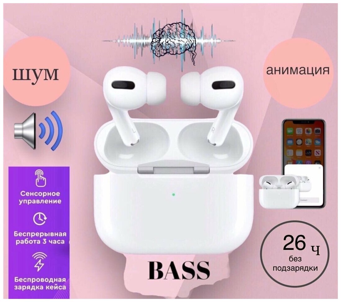 Беспроводные Наушники TWS 3 Bas Pro Наушники с Шумоподавлением, Совместимы для IPhone и Android Air Белый Podsдля интересное: