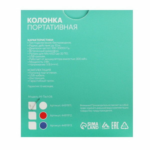Портативная колонка LuazON Hi-Tech08, 3 Вт, 300 мАч, microSD, USB, белая интересное:
