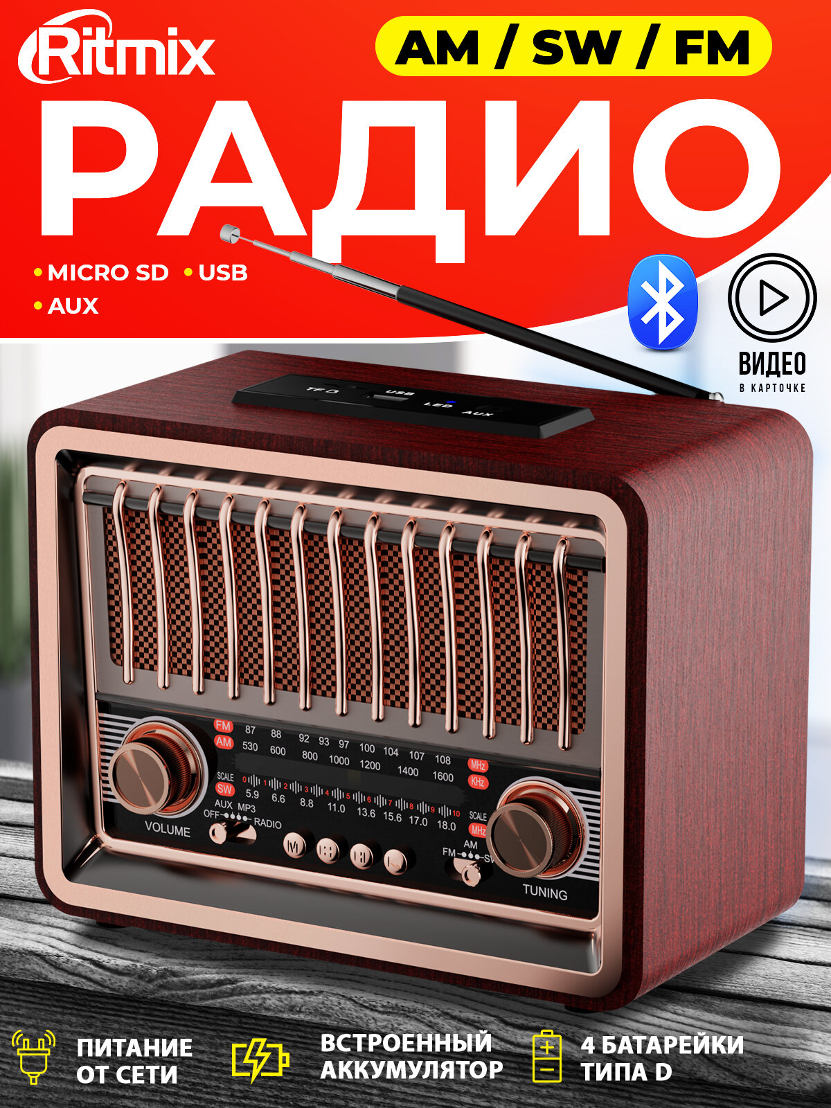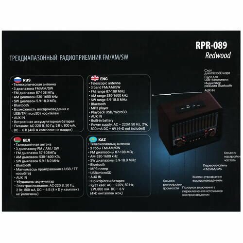 Радиоприёмник RITMIX RPR-089 REDWOOD интересное: