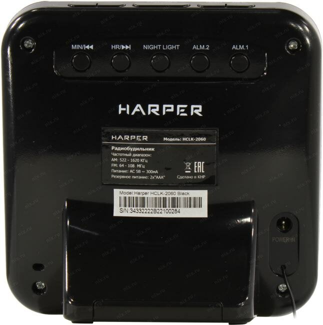 Радиобудильник с подсветкой HARPER HCLK-2060, черный корпус/черный перед/белая индикация