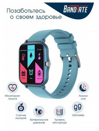 Умные часы BandRate Smart BRSY22BLBL с мониторингом кислорода в крови, трекером сна, будильникром интересное: