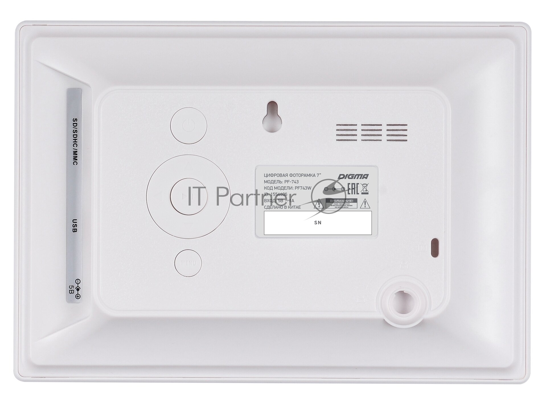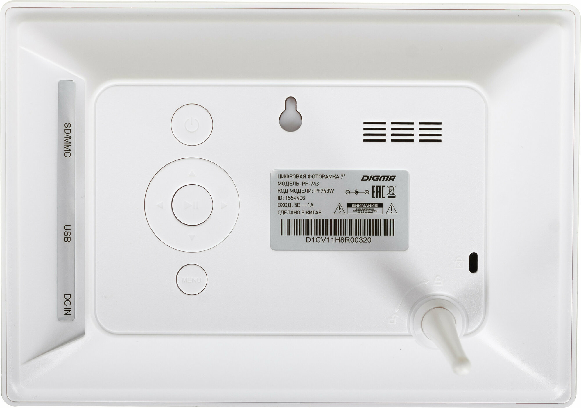 Фоторамка Digma 7" PF-743 IPS 1024x600 белый пластик