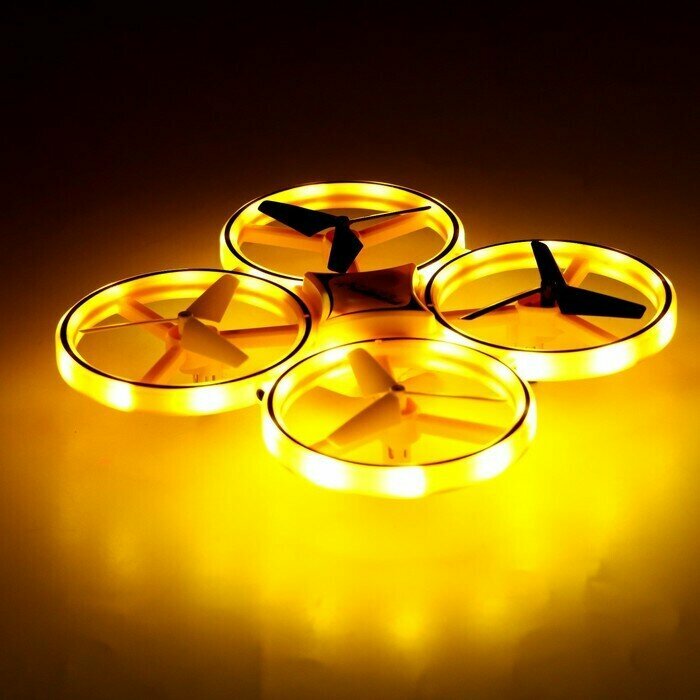 Купить Квадрокоптер радиоуправляемый DRONE, подсветка, работает от аккумулятора, цвет жёлтый