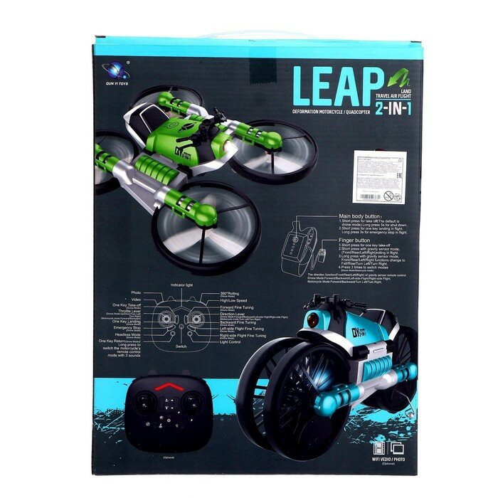 Квадрокоптер радиоуправляемый "Трансформер", управление жестами, цвет зелёный. В наборе 1шт. интересное:
