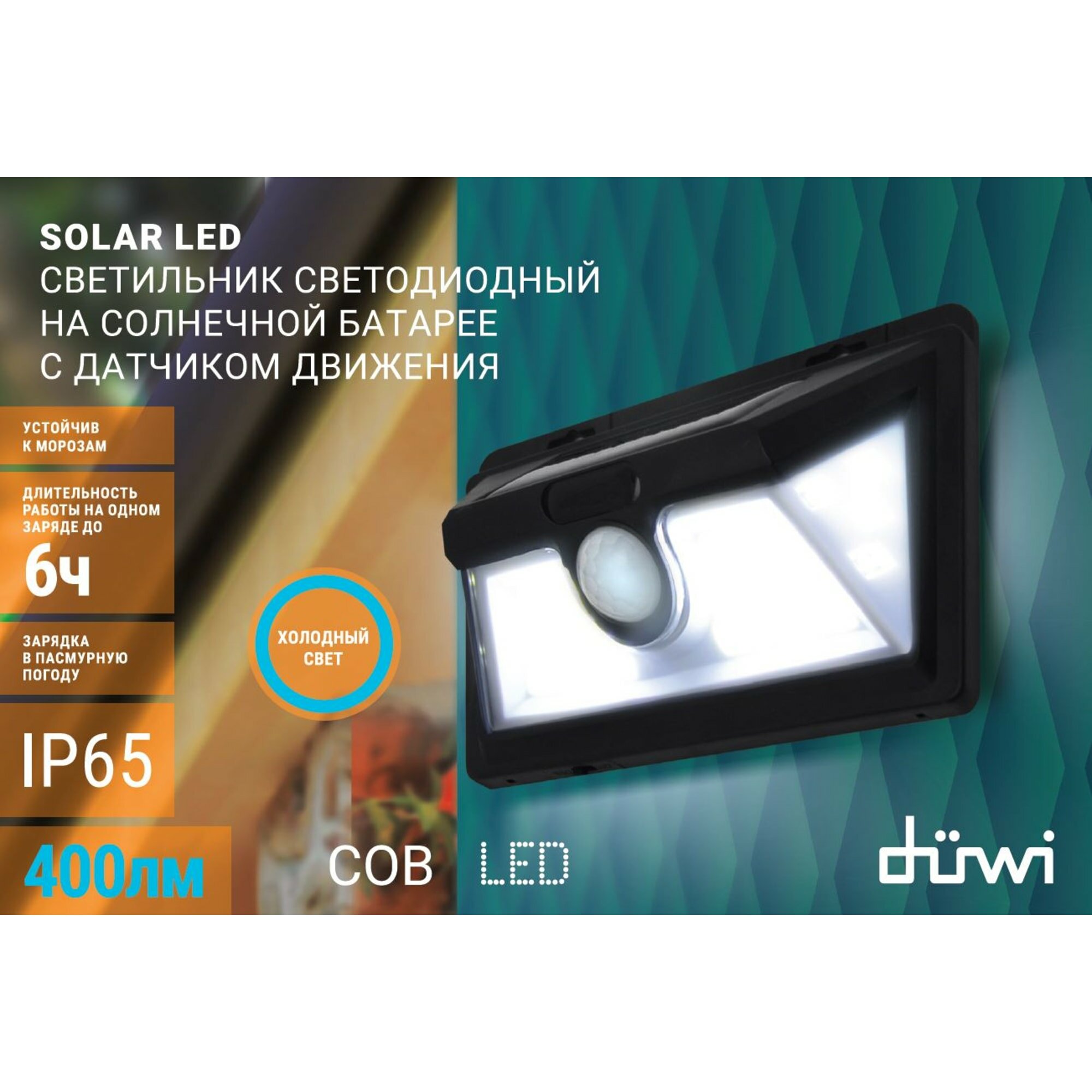 Прожектор светодиодный уличный Duwi Solar на солнечных батареях 11 Вт 6500К IP65 с датчиком движения черный интересное: