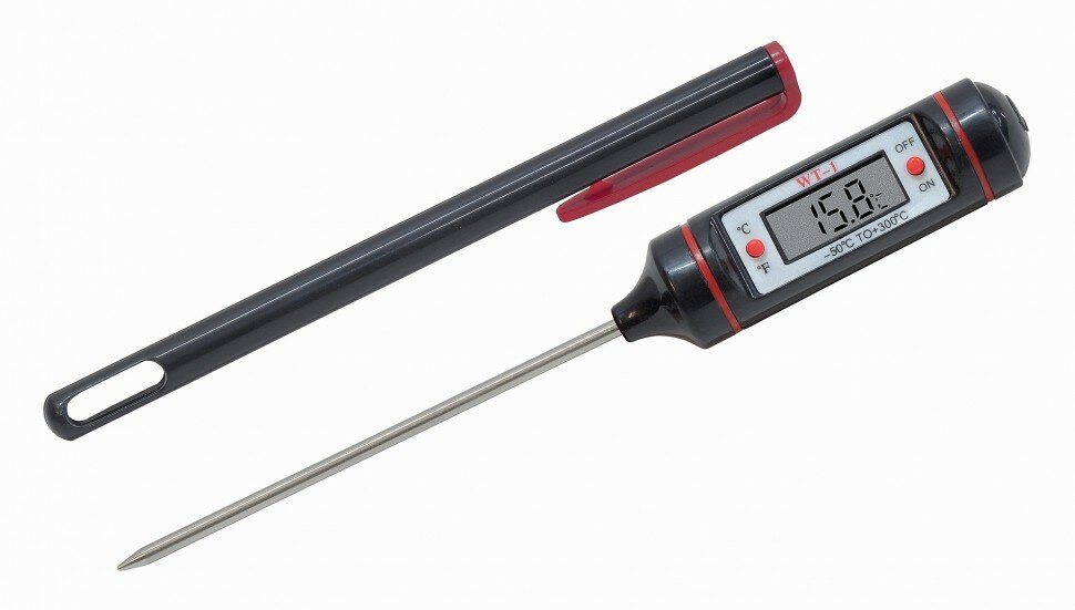 Кулинарный термометр электронный со щупом из нержавеющей стали, термометр для еды, мяса, вина, провод 1 метр / таймер кухонный