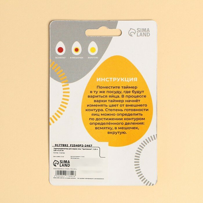 Купить Термоиндикатор для варки яиц "Цыпленок"