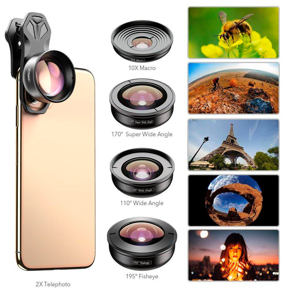Комплект объективов Apexel 5-in-1 HB5 для смартфона APL-HB5 интересное: