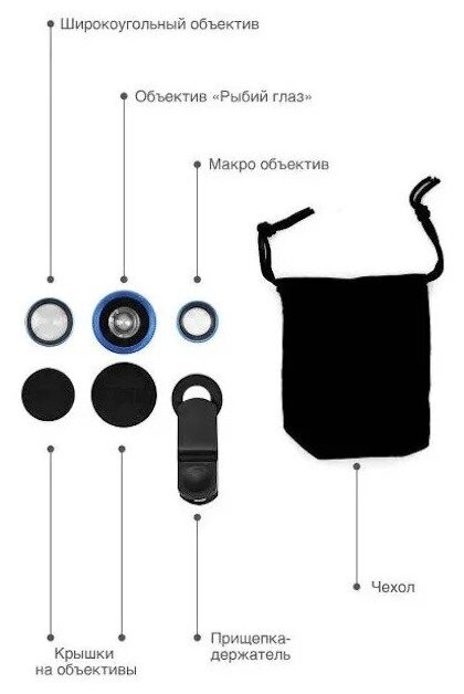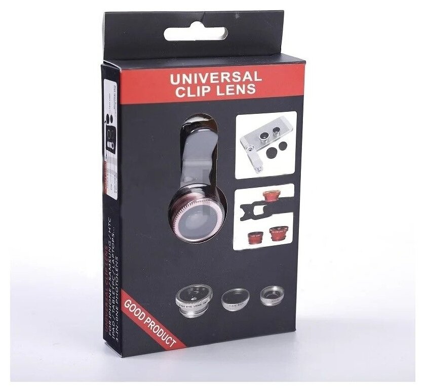 Набор объективов для телефона 3 в 1 / Fisheye рыбий глаз / широкоугольная и макро линза для смартфона интересное: