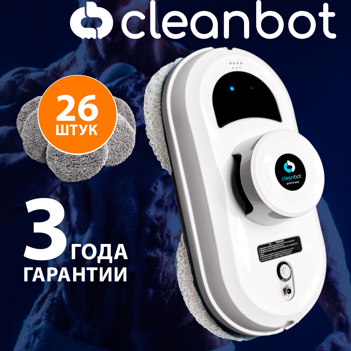 Робот-стеклоочиститель для окон и зеркал Cleanbot Pro, набор салфеток 26 шт.