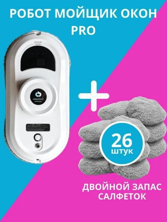 Робот мойщик окон Cleanbot Pro + дополнительный набор салфеток 26 шт.