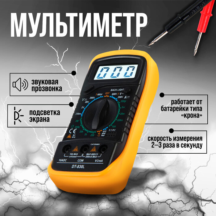 Мультиметр, DT-830L, ACV/DCV, DCA, 200-2МΩ, прозвон, подсветка