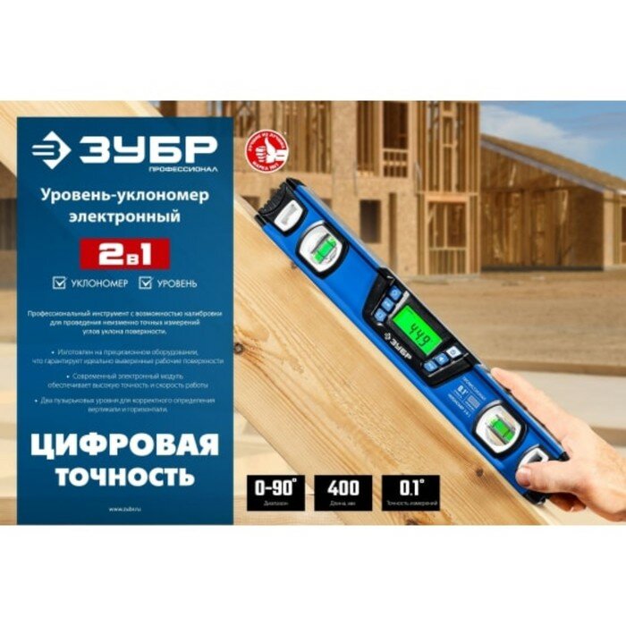 Горизонт уровень-уклономер, 400 мм, Диапазон 0-90°, Точность ±0,1°, Подсветка экрана, ЗУБР Профессионал интересное: