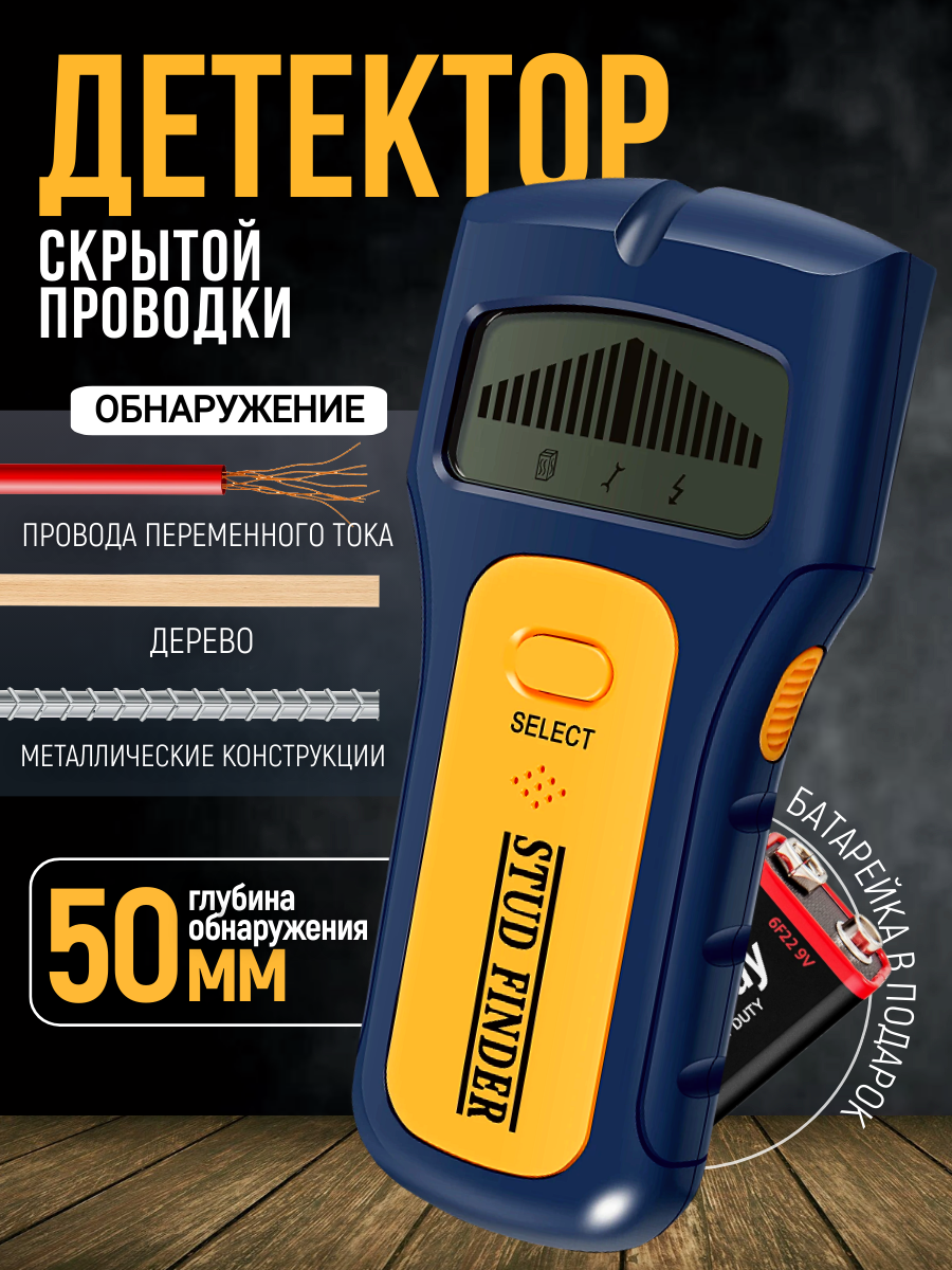 TH(610)-UE (Z62227ED) - индикатор-детектор проводки и металла 3 в 1, поиск-индикатор кабеля в стене. Автоматическая калибровка