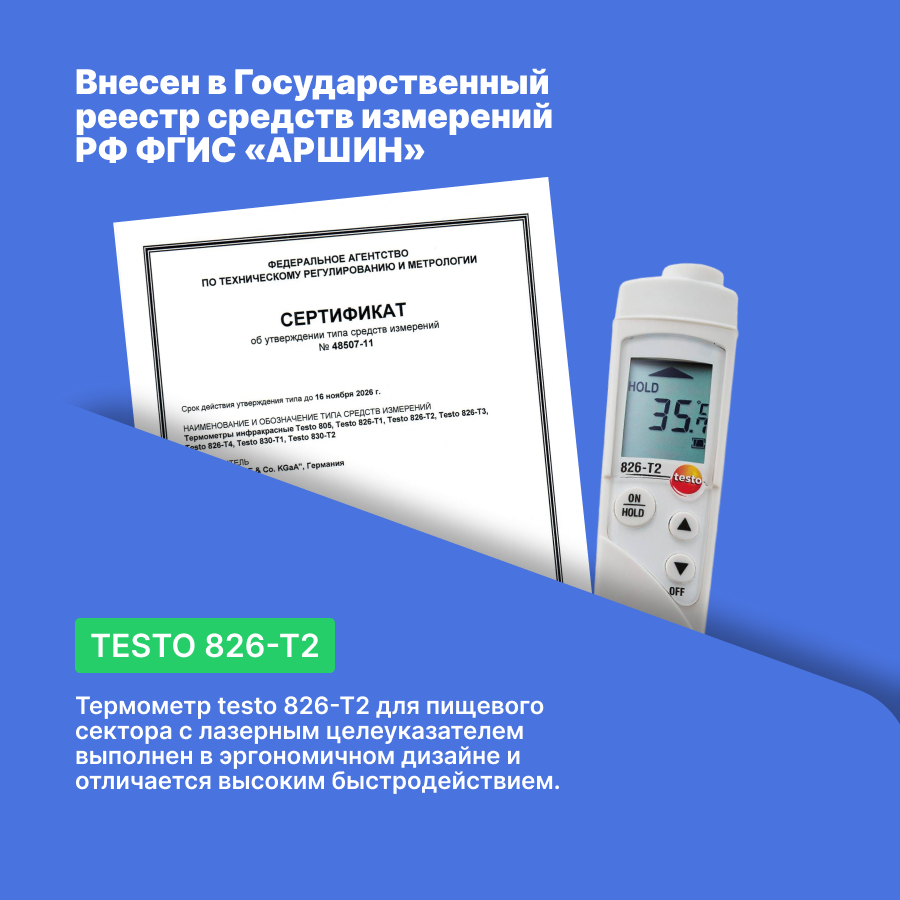 Инфракрасный термометр testo 826-T2 для пищевого сектора с лазерным целеуказателем (оптика 6:1) интересное: