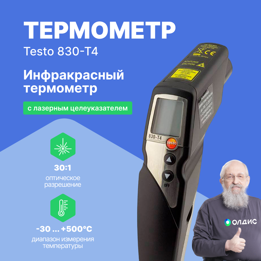Testo 830-T4 - ИК-термометр с 2-х точечным лазерным целеуказателем (оптика 30:1) интересное: