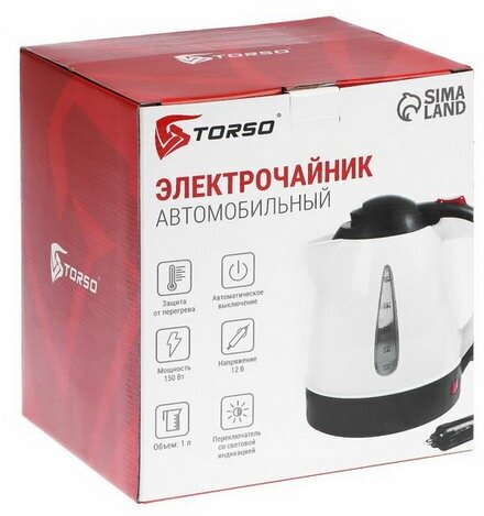 TORSO Электрочайник автомобильный 1 л, 12 В, 150 Вт