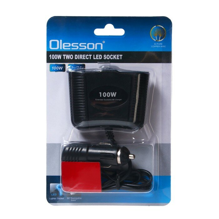Разветвитель автоприкуривателя 1631 Olesson 2 гнезда прикуривателя, 1 USB гнездо