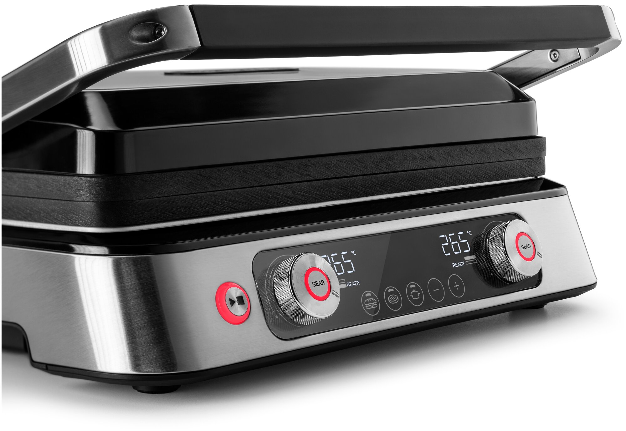 Электрогриль DeLonghi MultiGrill CGH1112D с 2 съемными панелями, независимой регулировкой зон нагрева и 3 режимами, серебристый/черный