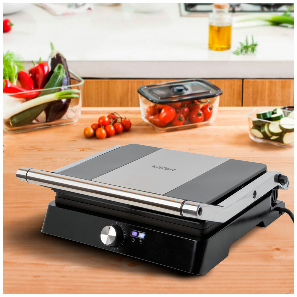 Электрогриль KitFort КТ-1662, черный и серебристый