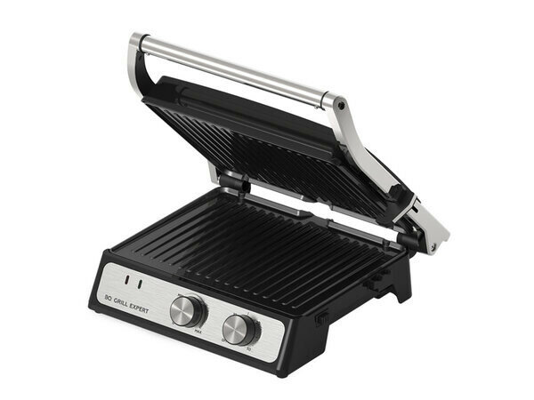 Электрогриль BQ GR1002 Черно-серебристый / Мощность 1800 Вт / Антипригарное покрытие / Регулировка температуры