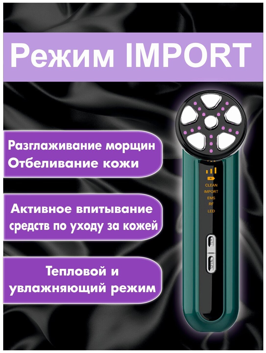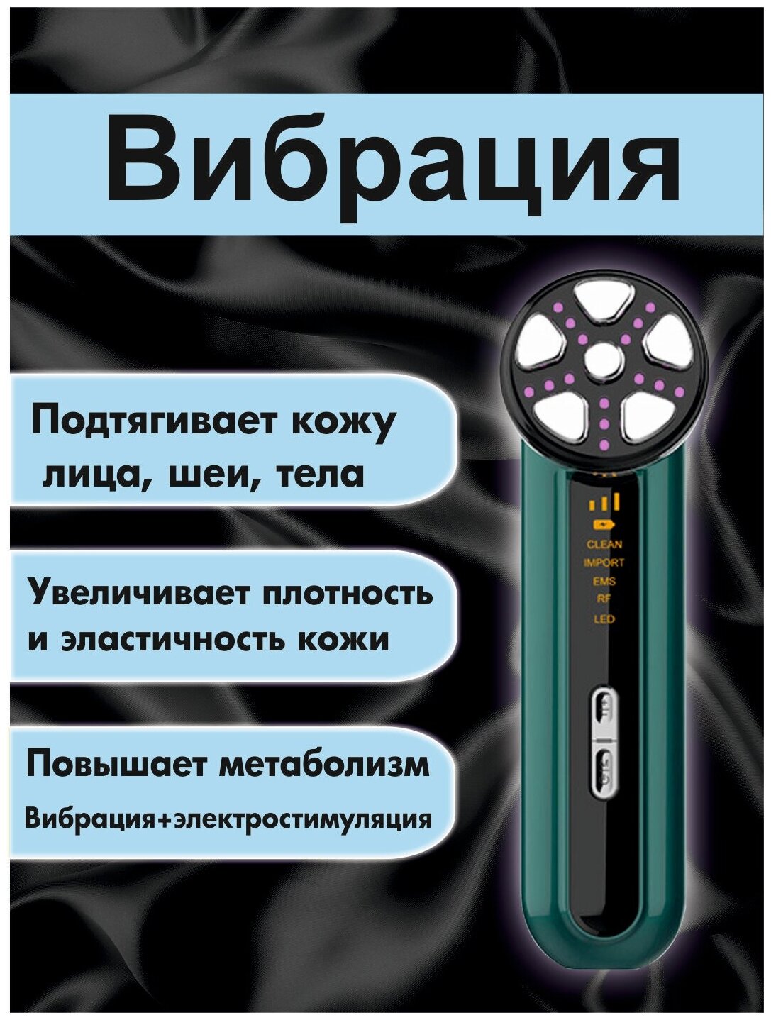 | Принцип работы | RF-лифтинг / вибрация / ионизация / микротоки / миостимуляция / светотерапия |