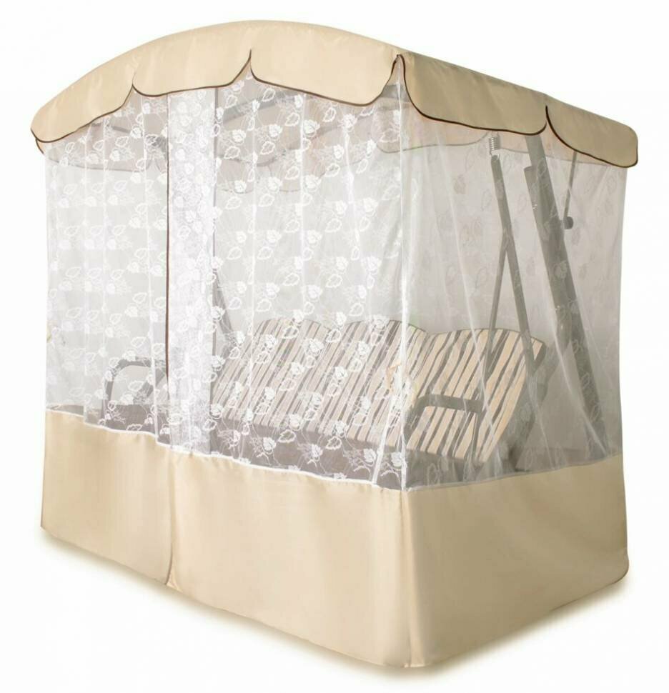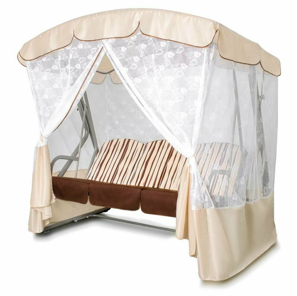 Качели садовые 4-х местные Ольса Шатер ткань панама каркас коричневый, ткань полоска бежево-коричневная