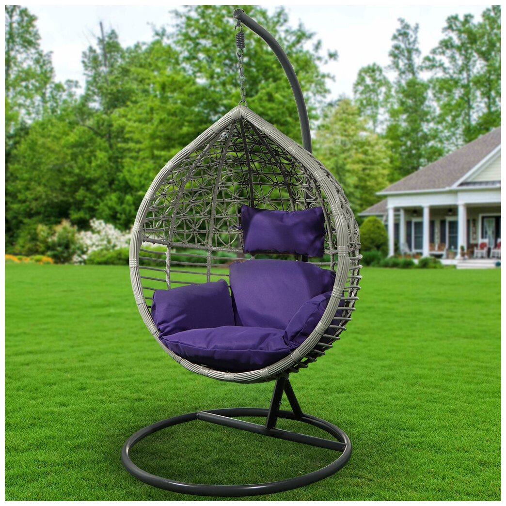Качели садовые Кокон, 65х105х198 см, 150 кг, Green Days, темно-серые, ротанг, подушка фиолетовая, TZF-H056-18-3712