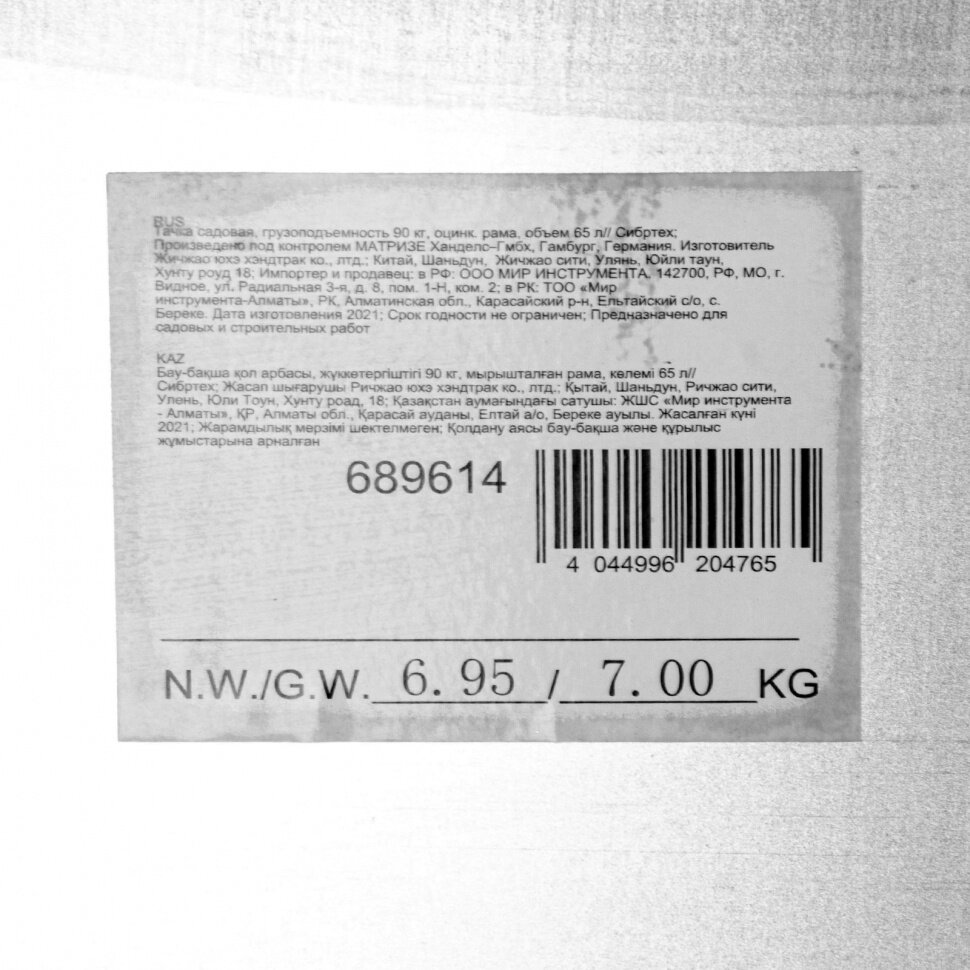 СИБРТЕХ Тачка садовая, грузоподъемность 90 кг, оцинк. рама, объем 65 л// Сибртех интересное: