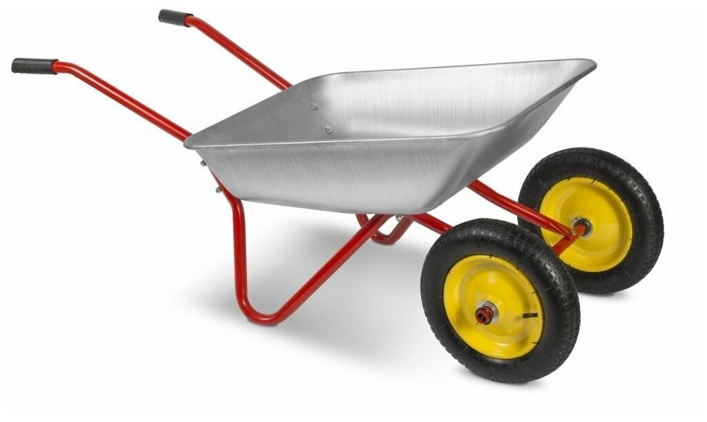 Тачка садовая двухколесная, объем 65л, грузоподьемность 90кг, 2 пневмо-колеса на подшипнике качения, диаметр колеса: 350 мм интересное: