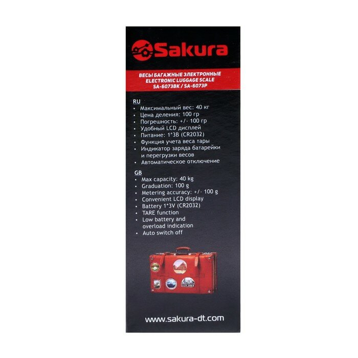 Весы багажные Sakura SA-6073BK, электронные, до 40 кг, чёрные интересное: