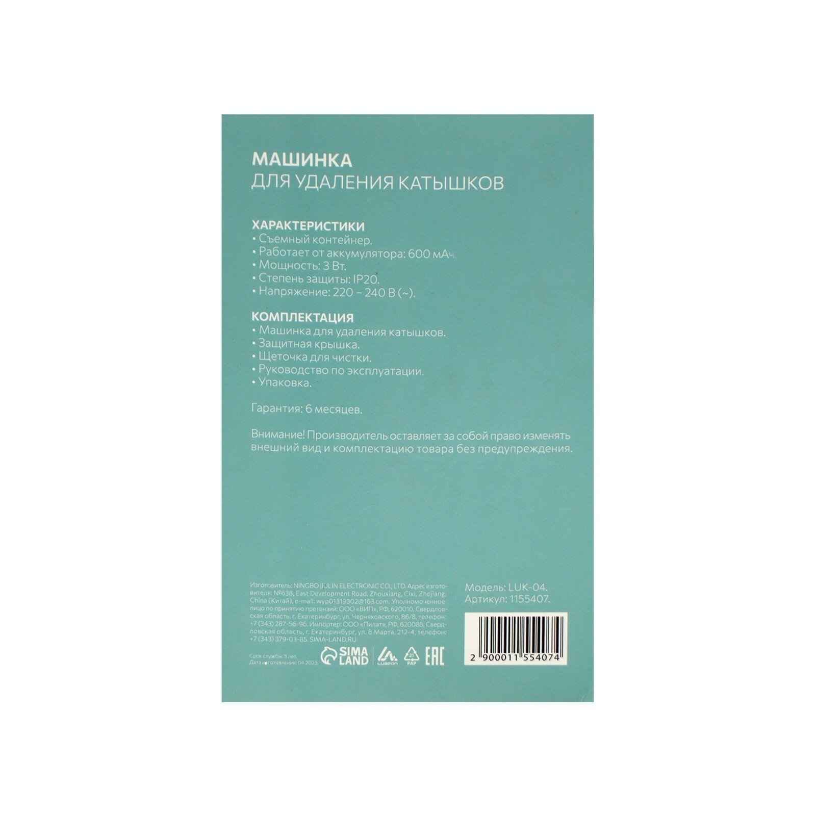 Машинка для удаления катышков LuazON LUK-04, АКБ, Питание 220 В, микс 1155407