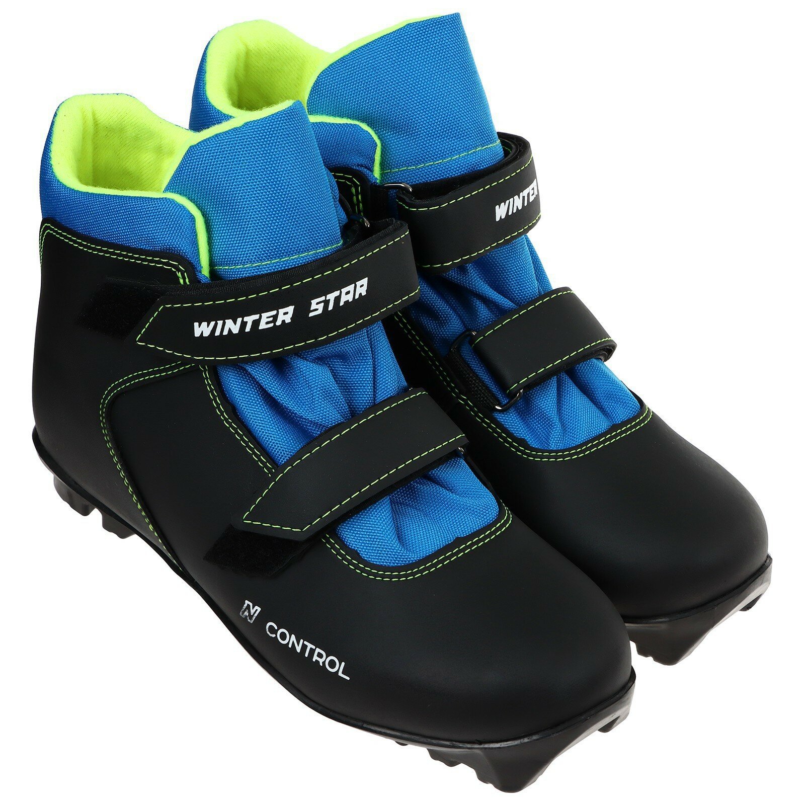 Winter Star Ботинки лыжные детские Winter Star control kids, NNN, искусственная кожа, цвет чёрный/синий/лайм-неон, лого белый, размер 32