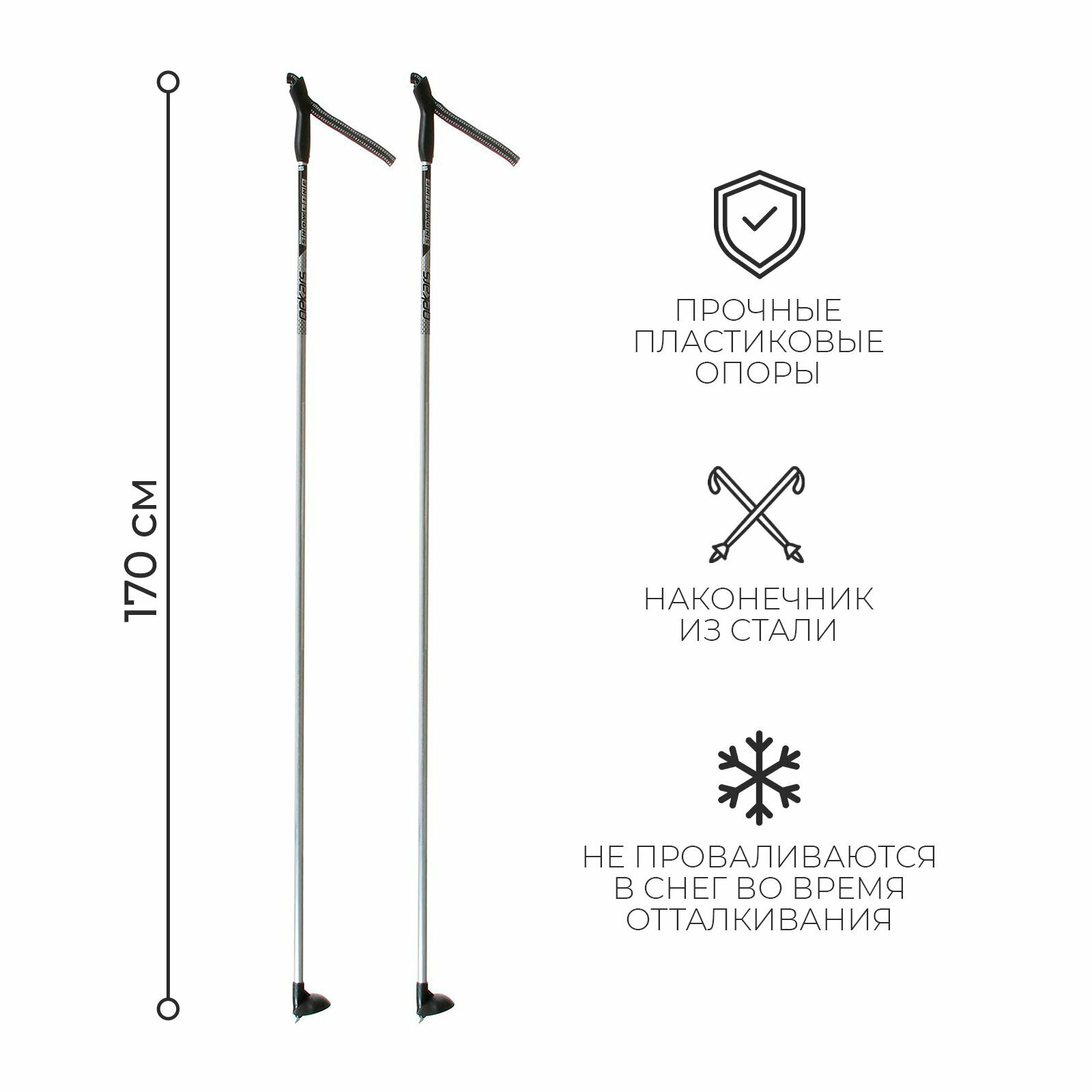 Палки лыжные "Snowline",алюминиевые, длина 170 см, цвет серебристый
