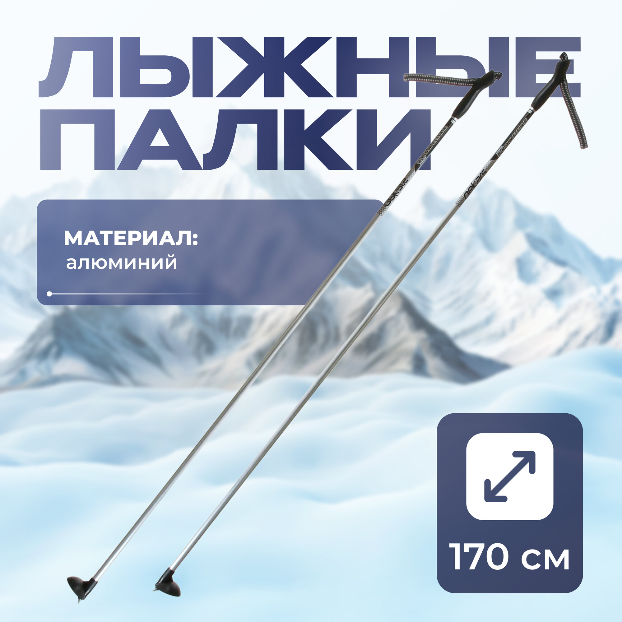 Палки лыжные алюминиевые, длина 170 см, цвет серебристый