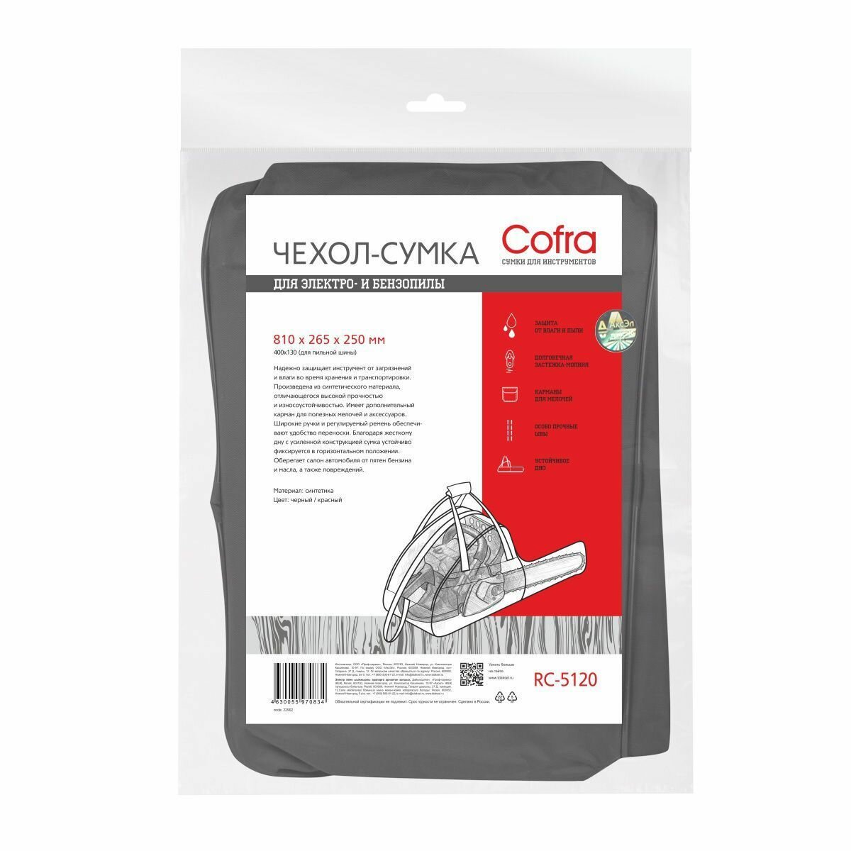Сумка Cofra для бензопилы, черная/красная, 810х265х250 интересное:
