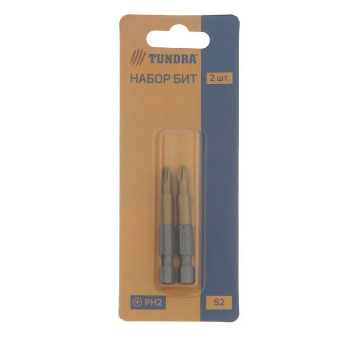 Биты тундра, намагниченные, сталь S2, 58-60 HRC, TiN, PH2 х 50 мм, 2 шт.(В наборе1шт.)