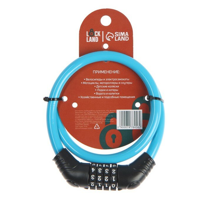 LOCKLAND Замок навесной велосипедный LOCKLAND, кодовый,10 х 650 мм, цвет голубой интересное:
