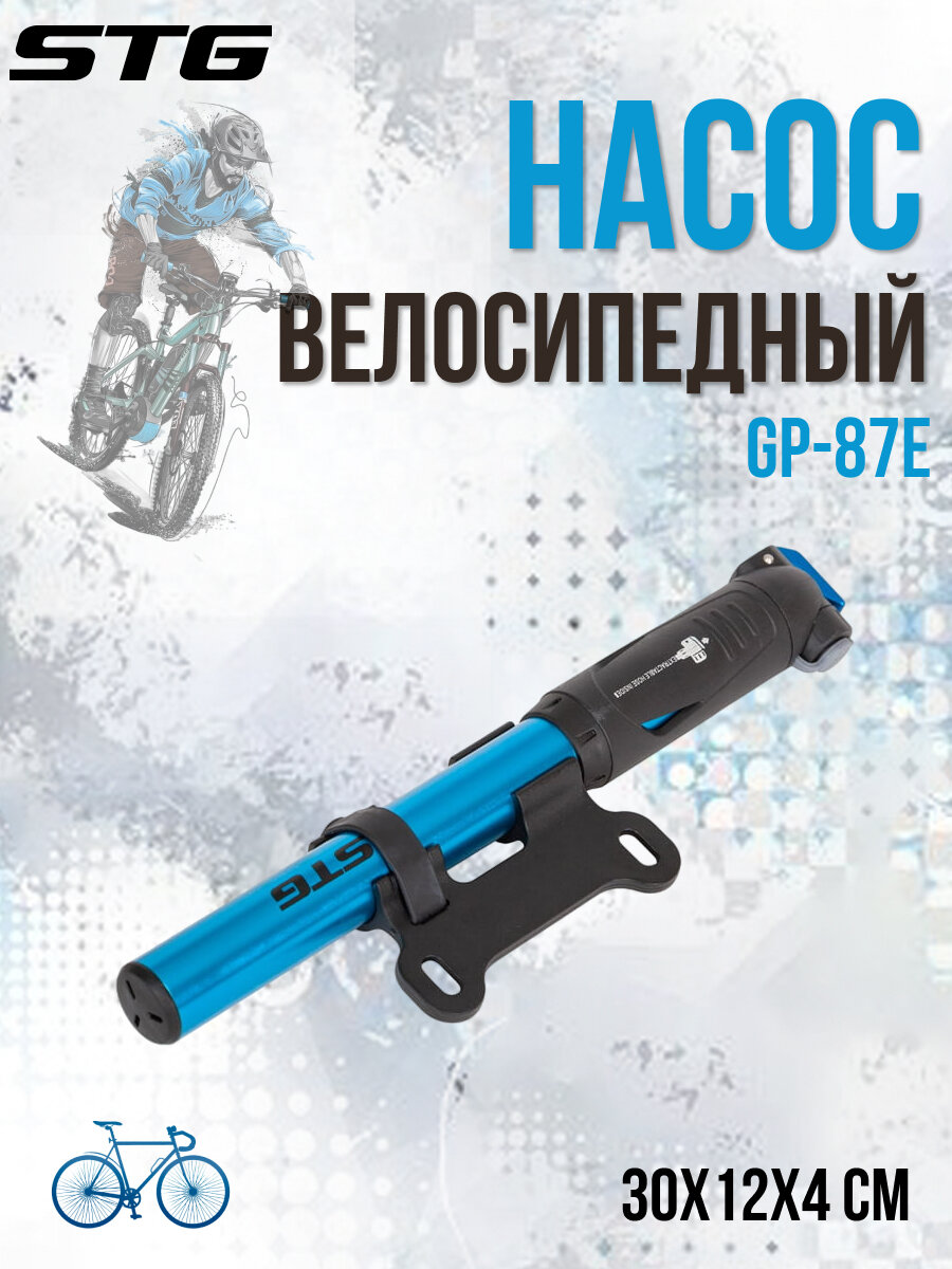 Насос велосипедный Stg GP-87E Schrader/Presta, шланг, алюминий, черный с синим