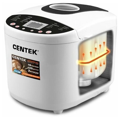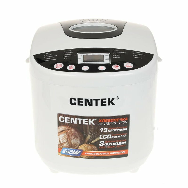 Хлебопечка Centek CT-1406 White <900г> 650Вт 19 программ (йогурт, джем, кекс), LCD, отсрочка