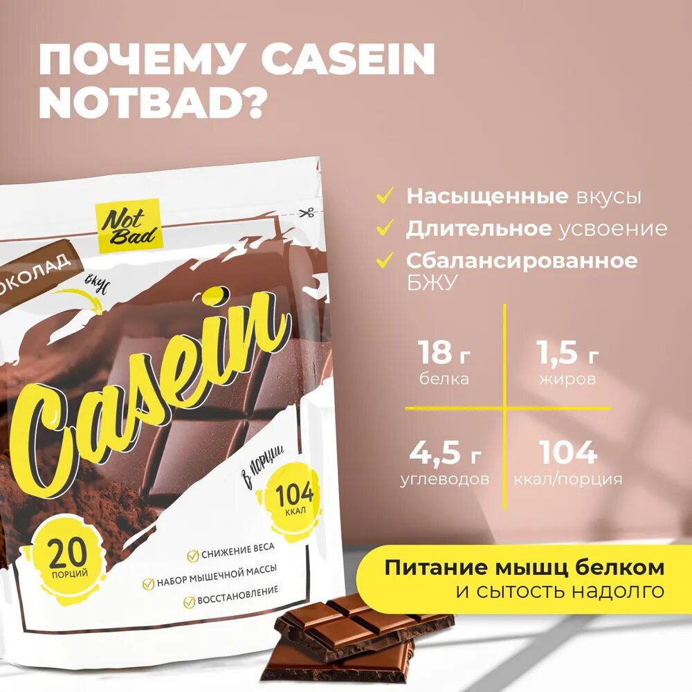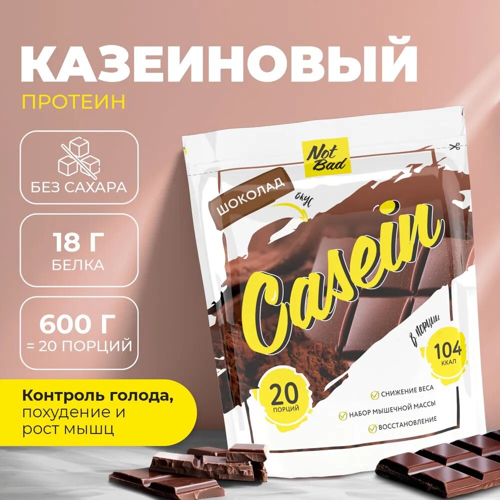 Купить Казеиновый протеин NotBad для похудения Казеин мицеллярный CASEIN, 600 гр, Шоколад