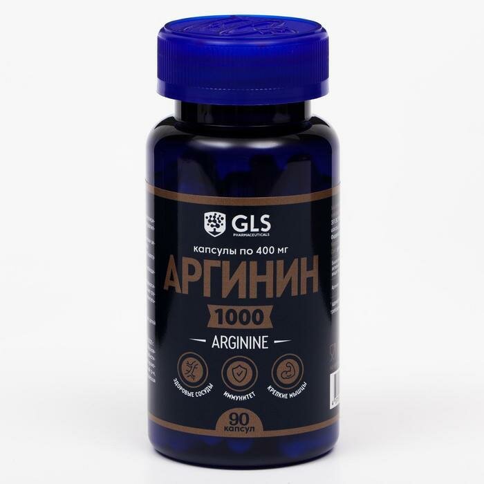 GLS Pharmaceuticals Аргинин 1000, развитие выносливости и нормализация артериального давления, 90 капсул по 400 мг