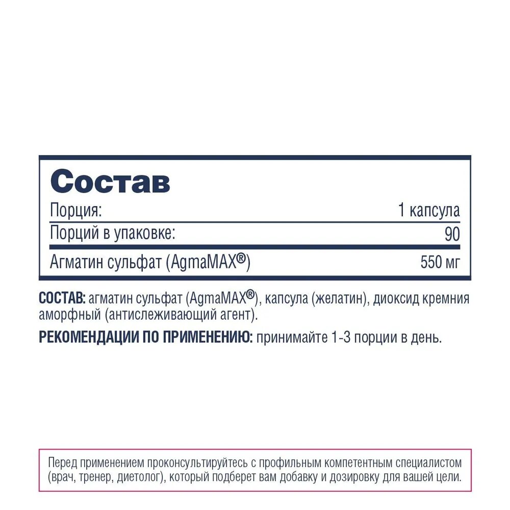 Agmatine Sulfate Capsules, 90 капсул