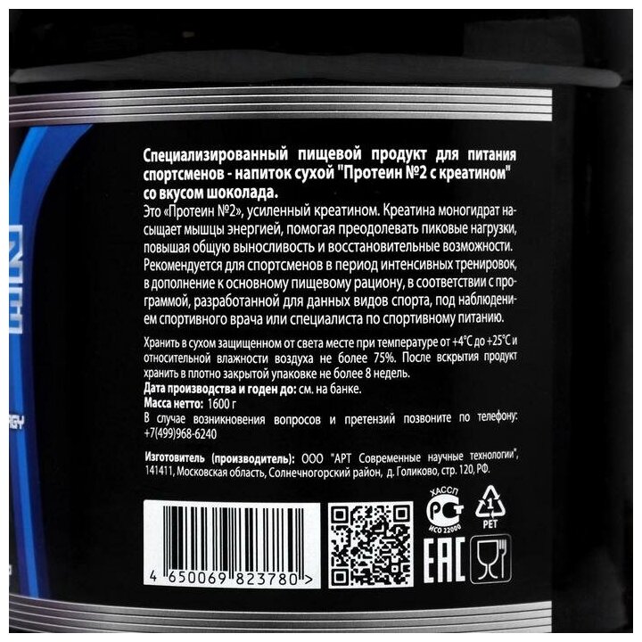 Протеин №2 "Юный атлет" с креатином, шоколад, 1.6 кг