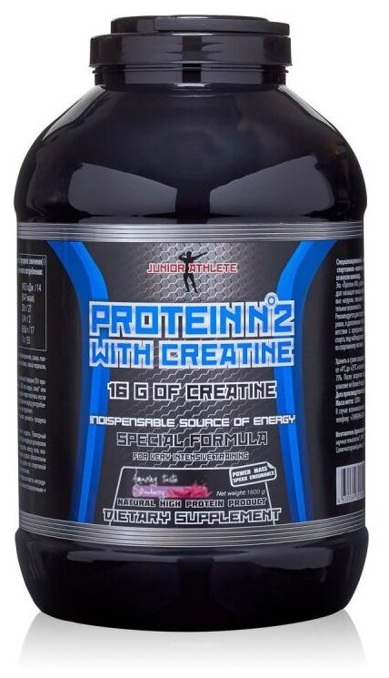 Юниор Протеин Junior Athlete №2 с креатином, клубника, спортивное питание, 1,6 кг