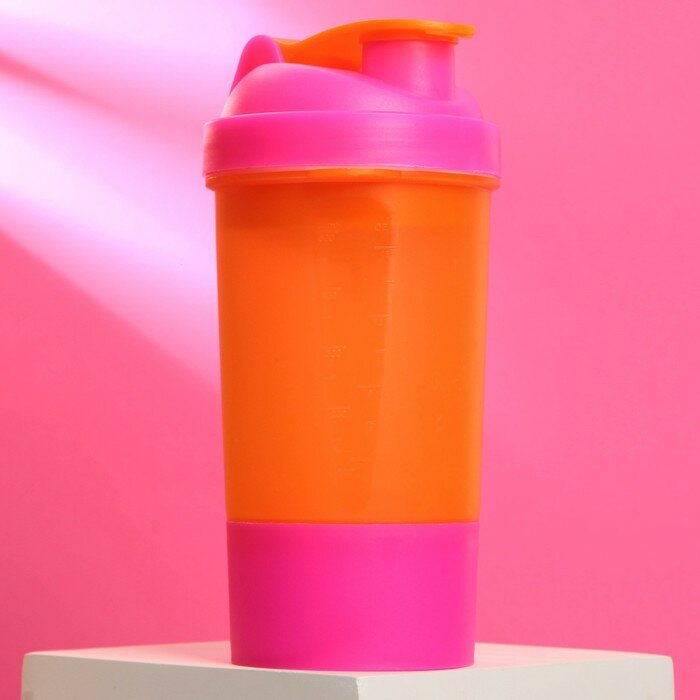 Шейкер спортивный с чашей под протеин, орнанжево-розовый, 500 мл интересное: